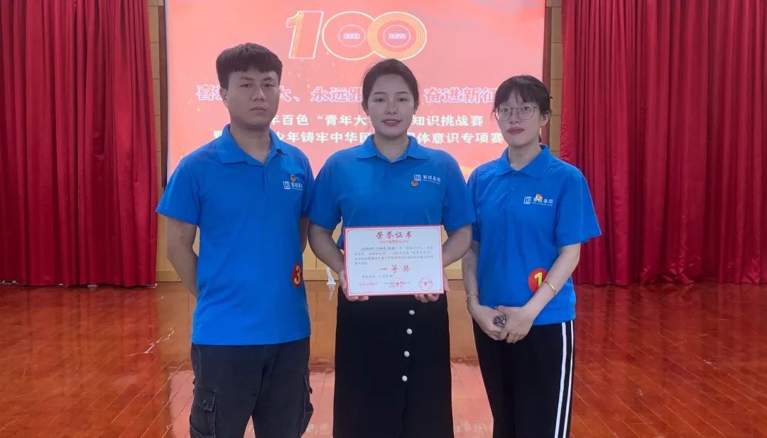 6月6日下午,2022年百色“青年大學習”知識挑戰(zhàn)賽暨全市青少年筑牢中華民族共同體意識專項賽在右江水務公司供水大廈7樓舉行,百投集團楊艷港、梁侶、黃雅三位青年代表集團公司團委參賽,他們在競賽中表現(xiàn)突出,成績優(yōu)異,榮獲一等獎。